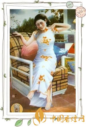 欽差牌香煙。一身印花旗袍,一張沙發(fā),東西方文化相融,一點(diǎn)也不覺(jué)得突兀。