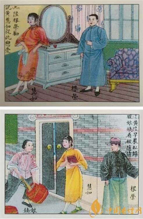 這套卷煙畫片根據(jù)1928年轟動全國的一起感情事件改編。黃慧如與陸根生的愛情故事是當時轟動滬上的著名案件之一,各大報紙爭相報道,以之為題材的書籍、新劇、電影、評彈等數(shù)不勝數(shù)。卷煙廠商自然也不甘落后,爭先恐后出品了這一熱門題材的卷煙畫片,收效頗豐。同期,有些卷煙廠商還出品了“黃慧如”煙標。