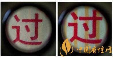 真品卷煙商標(biāo)印刷采用凹印,兩種顏色交界位置會(huì)有“鋸齒”痕跡。