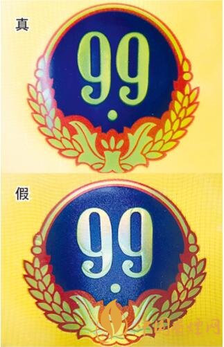 真煙背面“99”“麥穗”凹凸印刷與圖案完全重合;假煙則出現(xiàn)了明顯偏離。