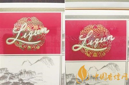 商標(biāo)紙印刷工藝差異對(duì)比:真煙“Liqun”字母以及花球的圖案清晰,線條清晰飽滿,立體感較強(qiáng)。假煙圖案整體較為模糊,字體不飽滿,邊緣不清晰,無(wú)立體感。