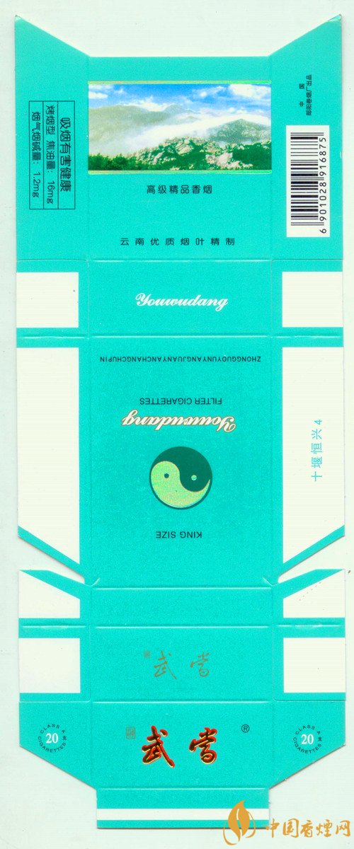 我國(guó)有不少道教圣地,以此為主題的煙標(biāo)也可以看到太極圖樣。上世紀(jì)90年代,湖北鄖陽(yáng)出品的“武當(dāng)”煙標(biāo),副版就有一幅太極圖。