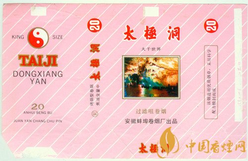 而安徽蚌埠卷煙廠出品于上世紀(jì)80年代的“太極洞”套標(biāo),副版也繪有一幅太極圖,主版圖案分別是位于安徽廣德縣東北石龍山太極洞內(nèi)的“太上老君”“金龍盤玉柱”“大千世界”“壺天宮”“三清池”5處自然景點(diǎn)。