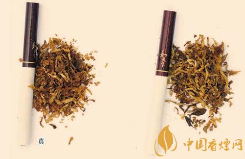 真煙煙支采用復合濾嘴,煙絲切絲寬度均勻,煙絲疏松、光澤油潤性好、呈檸檬黃色,煙絲結(jié)構(gòu)為葉絲和少量膨脹梗絲;假煙煙支采用普通濾嘴,制絲工藝簡單,煙絲寬度不均勻,有少量梗絲,未經(jīng)過膨脹處理。