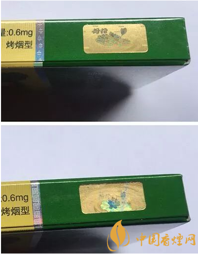 假煙采用普通仿制技術,顏色搭配較為死板,花蕊處金色線條模糊、擠成一團,圖案印刷粗糙、立體感差。