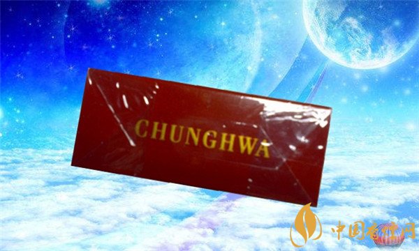 煙盒的左側標注著英文字母“CHUNG HWA”和藍色的防偽標簽。中華的出產方。